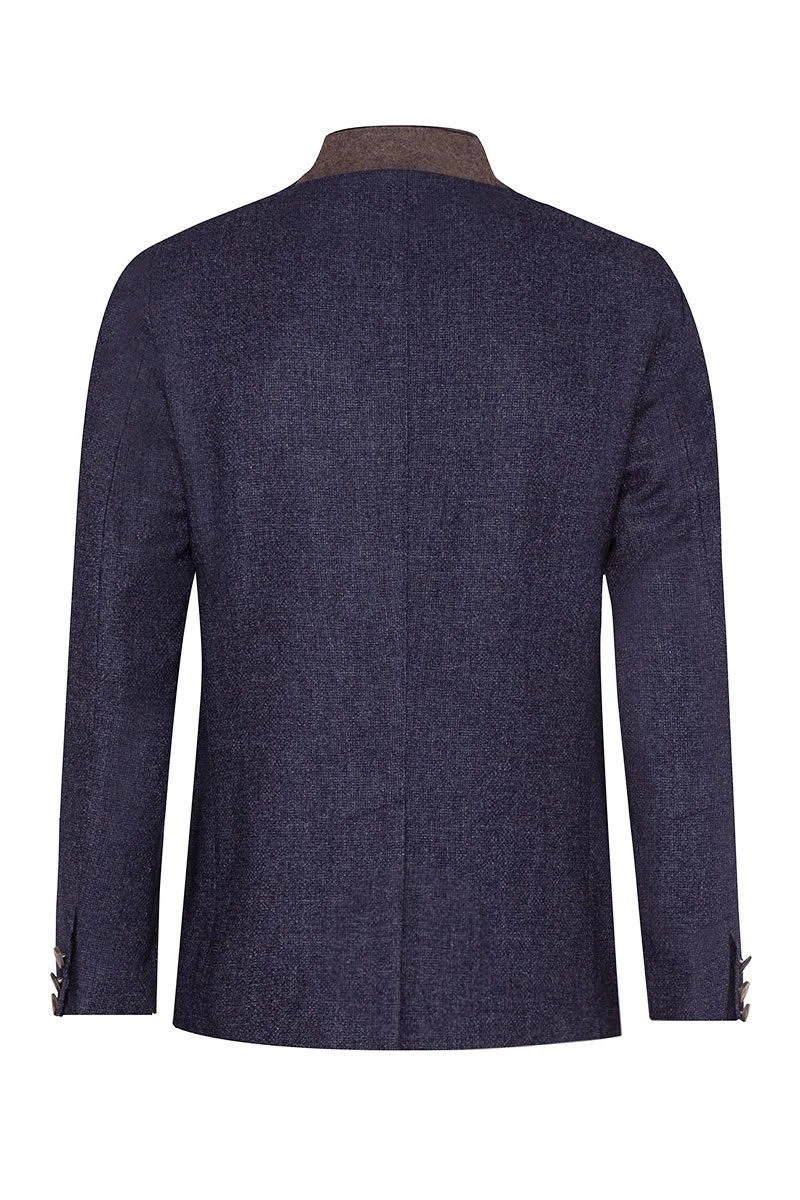 - dunkelblaues Herrensakko in Tweed-Optik mit hohem Woll-Anteil (70%)