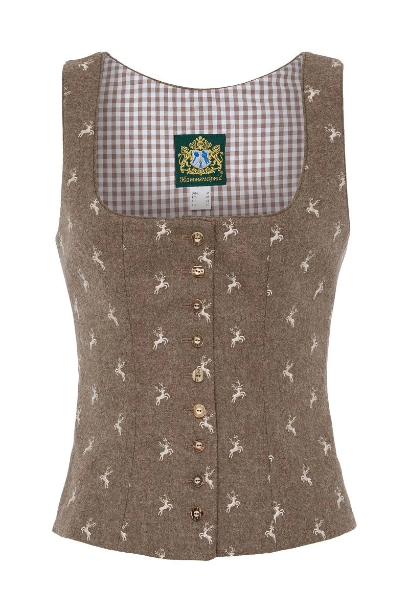 - Mieder aus Schurrwolle mit bestickten Hirschen