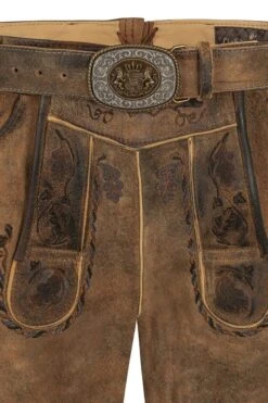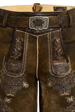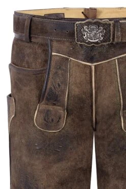 Lederhose Kurz Mit Gürtel Braun Rot Bestickt SSV Jahn Regensburg 009809