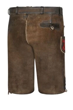 Lederhose Kurz Mit Gürtel Braun Rot Bestickt SSV Jahn Regensburg 009809