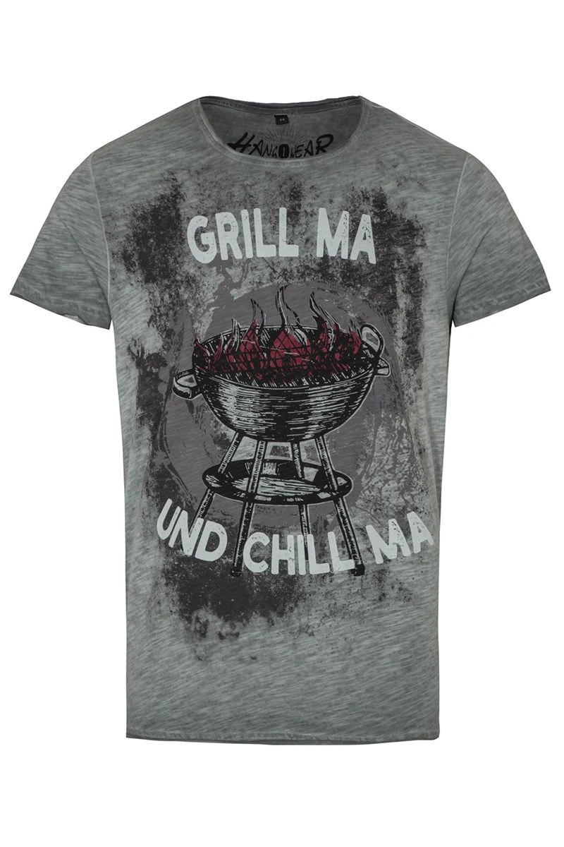 Produktbeschreibung hangOwear Trachtenshirt grau Grill ma und Chill ma