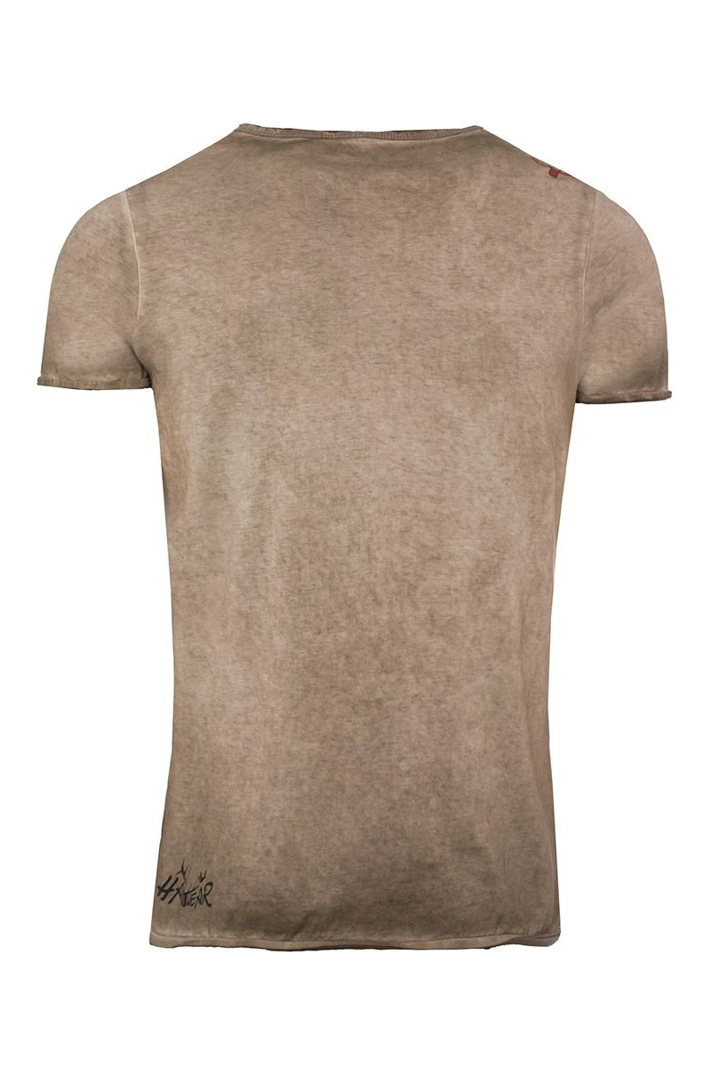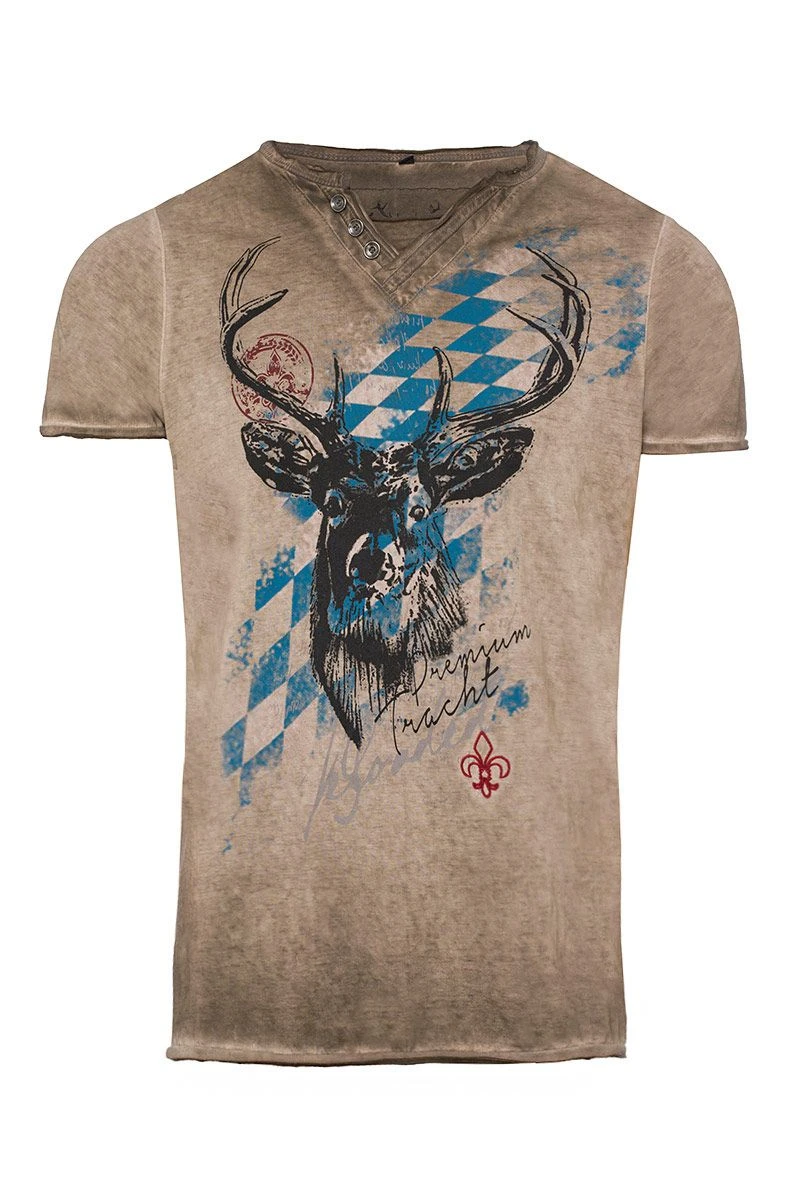 Produktbeschreibung hangOwear Trachtenshirt kurzarm braun mit Rauten und Hirsch Bavaria