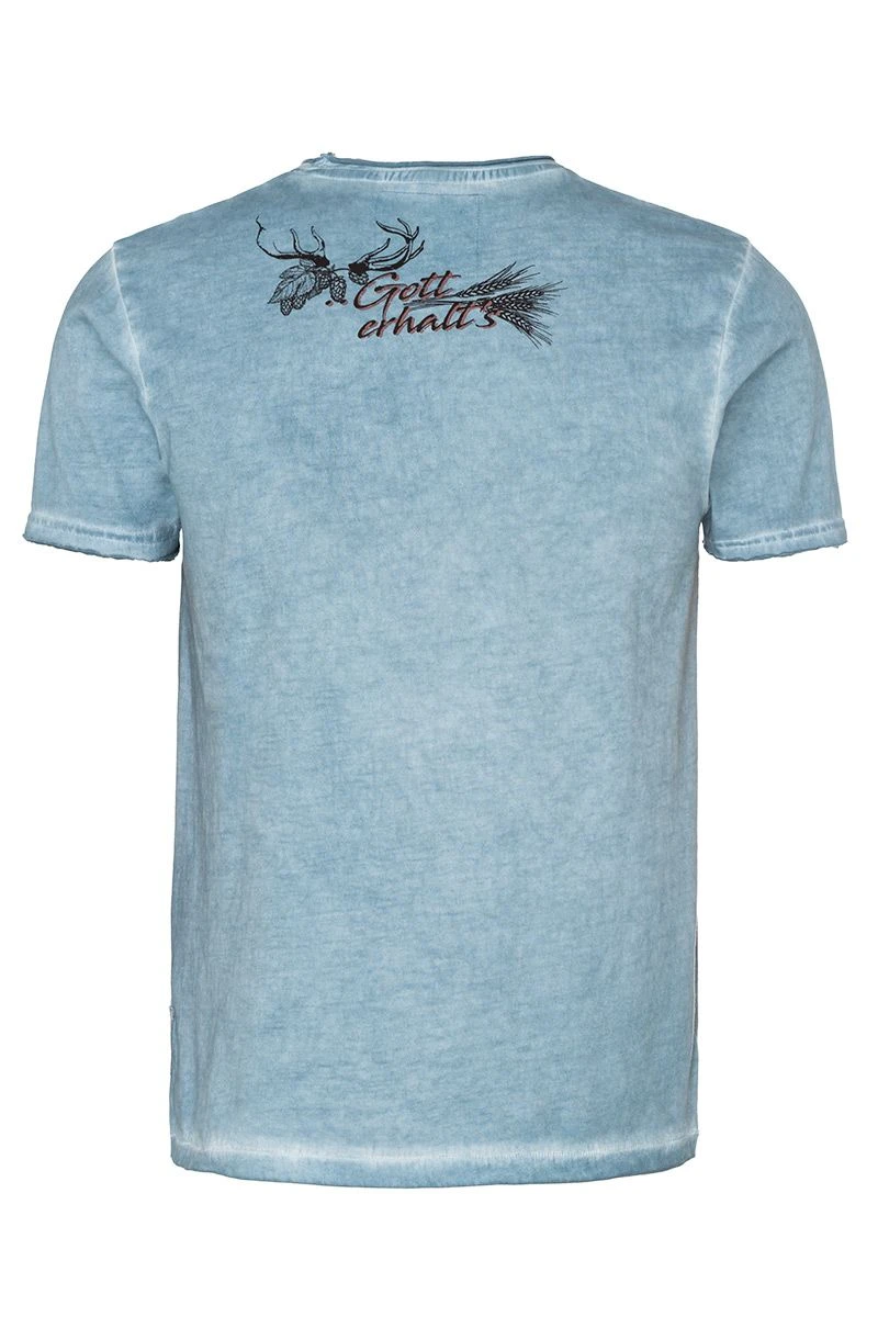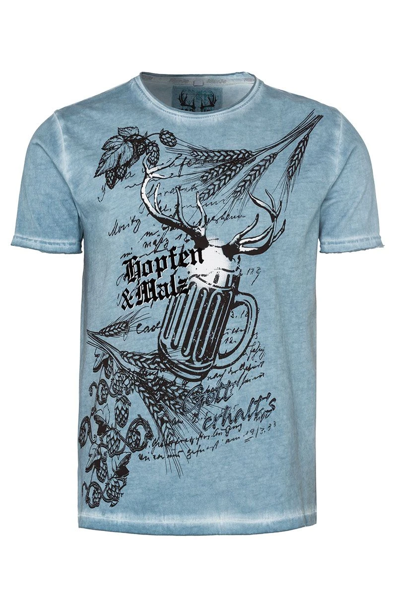 Produktbeschreibung MarJo Trachtenshirt kurzarm hellblau ‚Hopfen & Malz‘