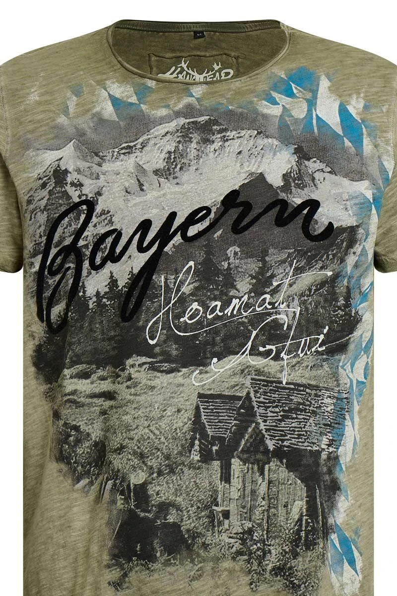 Produktbeschreibung hangOwear Trachtenshirt oliv Salvator „Bayern Hoamat Gfui“