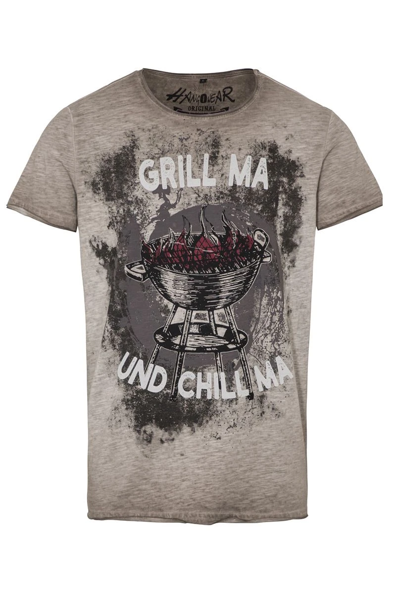Produktbeschreibung hangOwear Trachtenshirt taupe Grill ma und Chill ma
