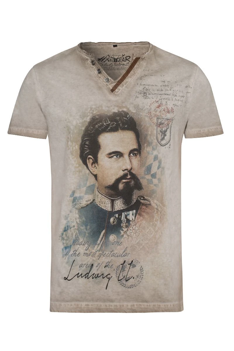 Trachtenshirt Taupe Mit König Ludwig Aufdruck 004316