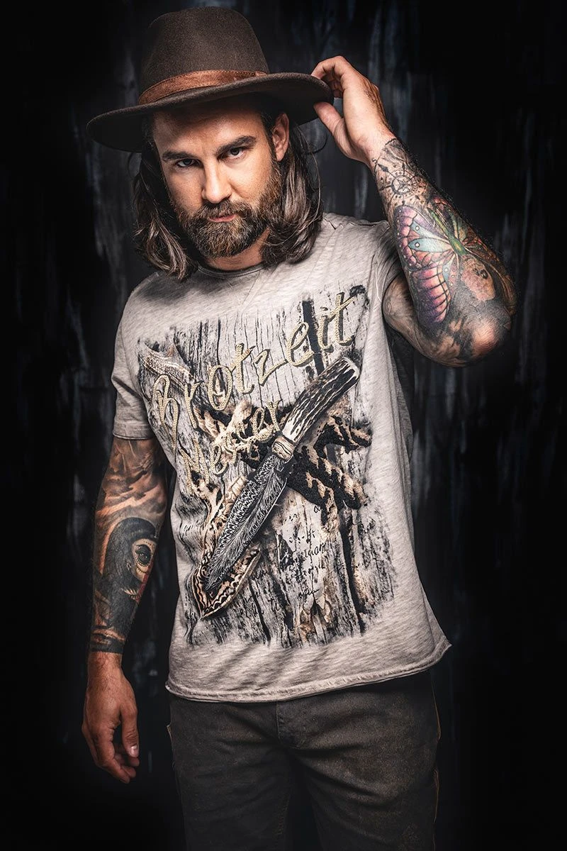 - meliertes Herrenshirt mit Motivdruck