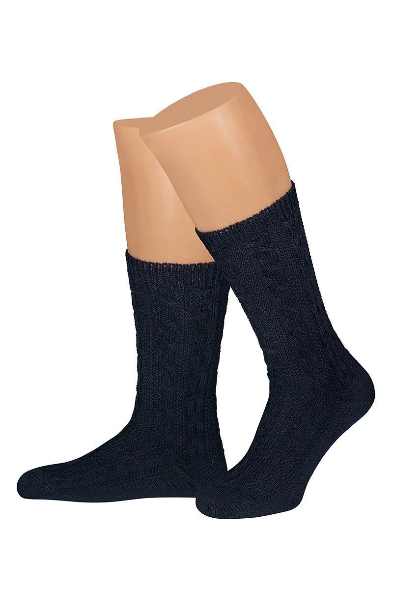Die Lusana Trachtensocken überzeugen durch ihr traditionelles Zopfmuster und die handgekettelten Spitzen. Die griffige und strukturierte Wollmischung sorgt für optimalen Tragekomfort und hält die Füße warm – ob auf der Wiesn oder Dahoam. Den österreichischen Strumpf einfach mit einer Hirschlederhose und Trachtenhemd sowie Haferlschuhen aus weichem Veloursleder kombinieren. Abgerundet wird der authentische Trachten-Look mit einem Herren-Charivari mit traditionellen Schmuckanhängern.