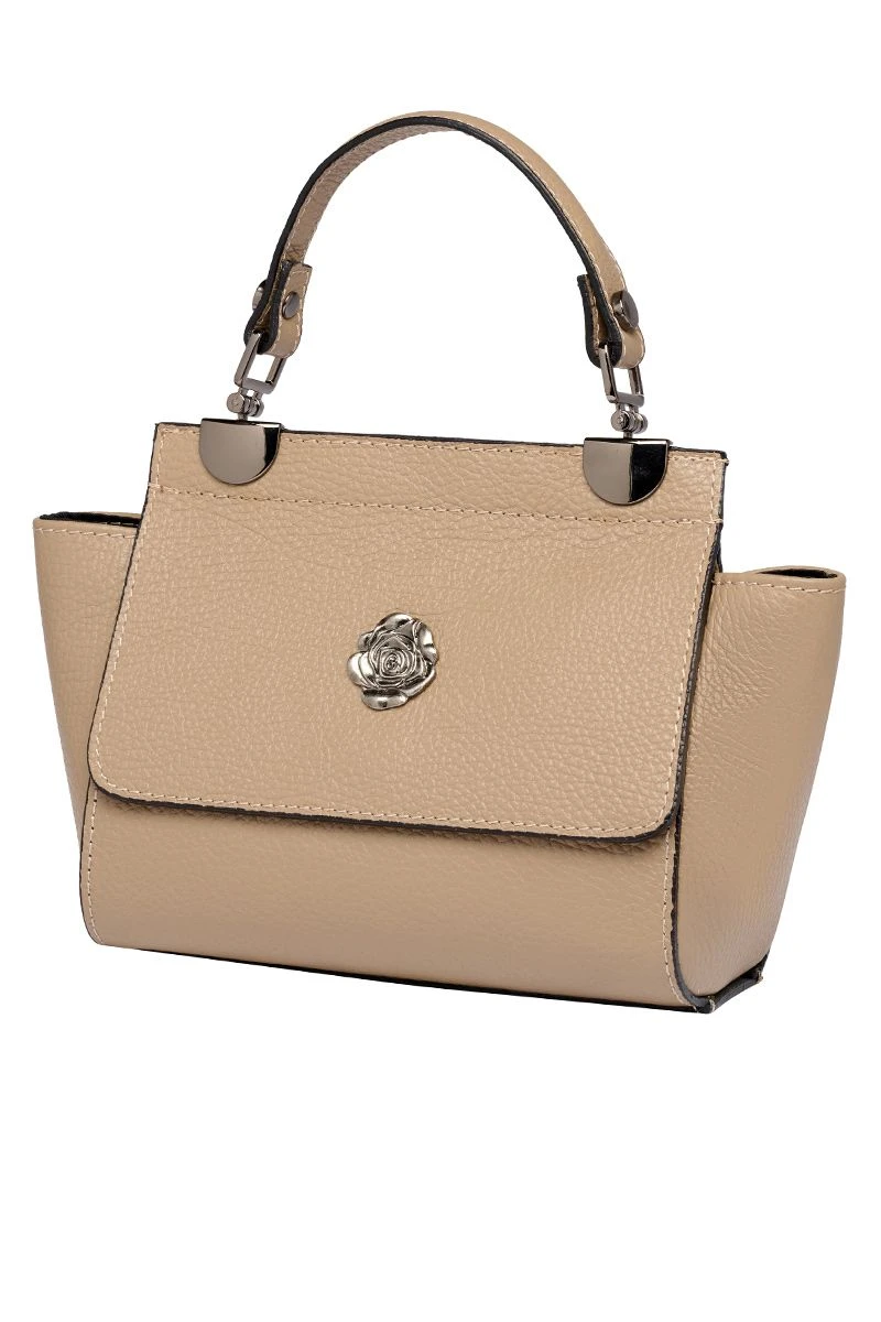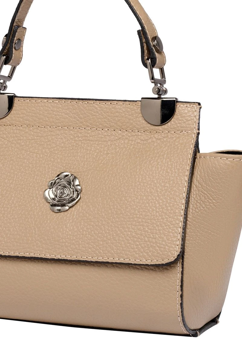 - taupefarbene Retro-Handtasche aus hochwertigem Nappaleder