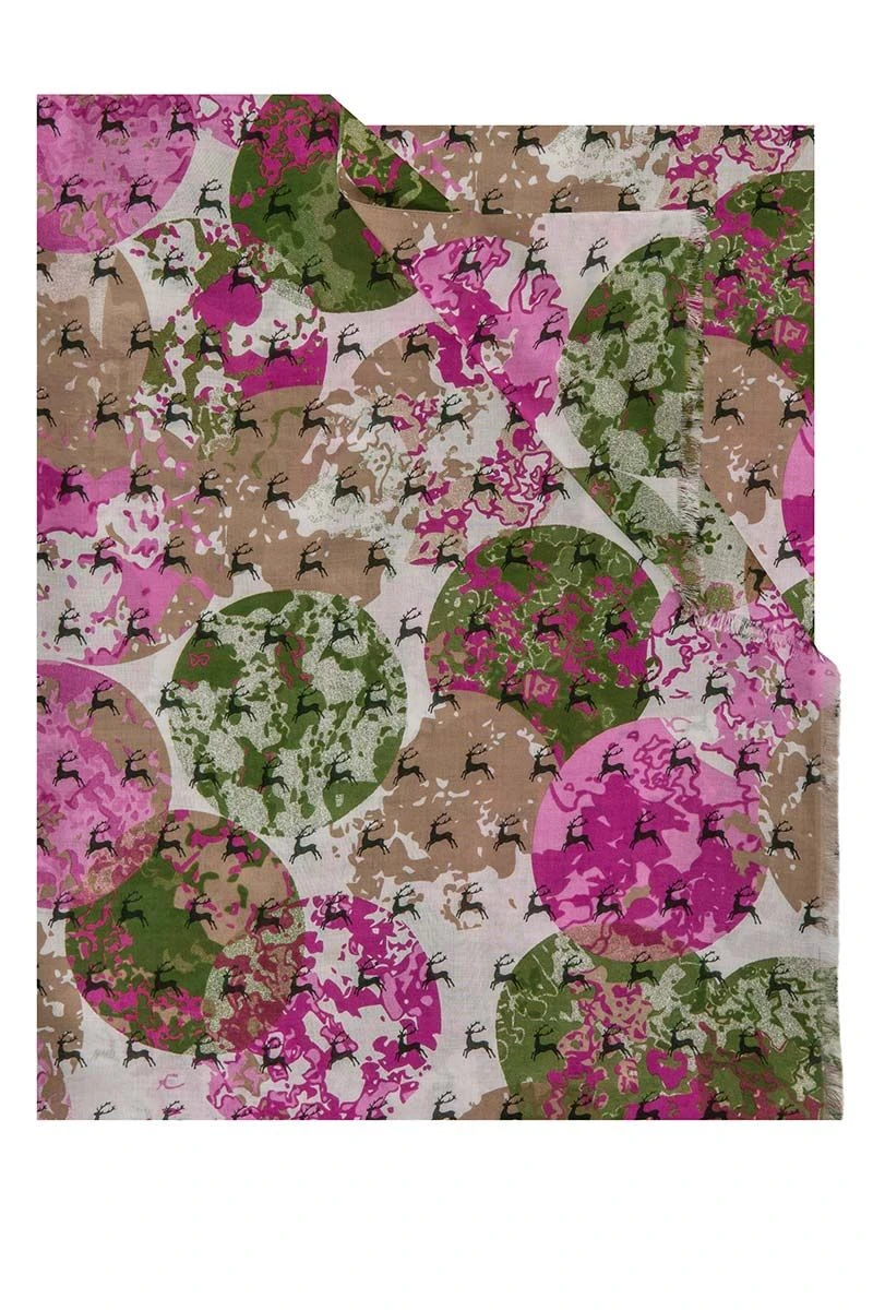 | Farbe | grüne und pinke Kreise mit aufgedruckten Hirschen |