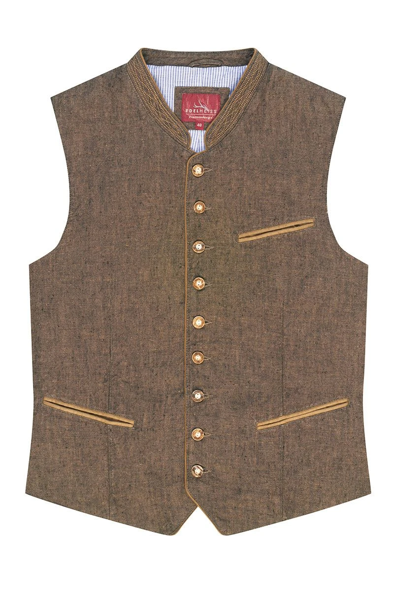 Produktbeschreibung edelheiss Trachtenweste braun Leinen Kent