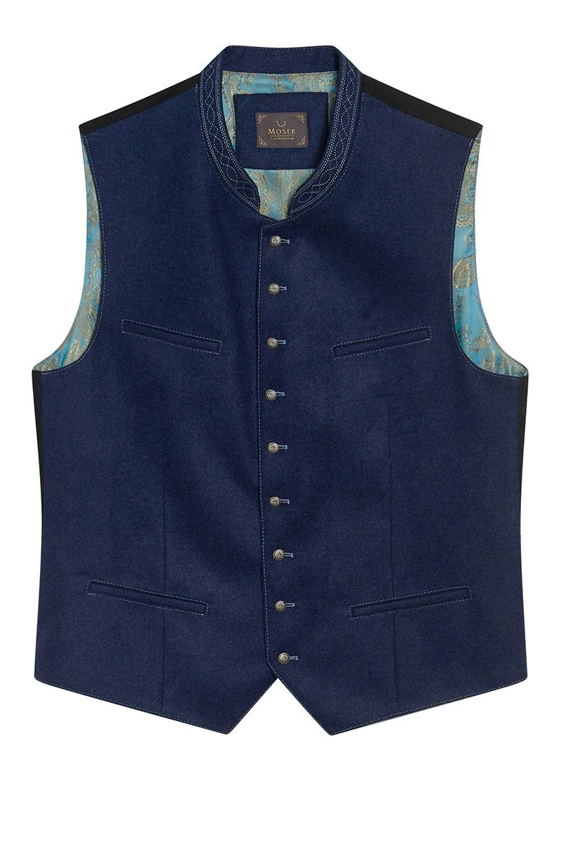 Produktbeschreibung MOSER Trachtenweste dunkelblau Loden Leopold