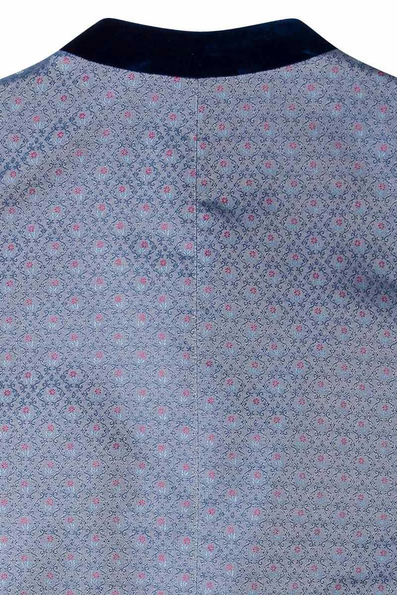 - Rückenteil aus blau schimmerndem Webstoff mit filigranem Blumenmuster