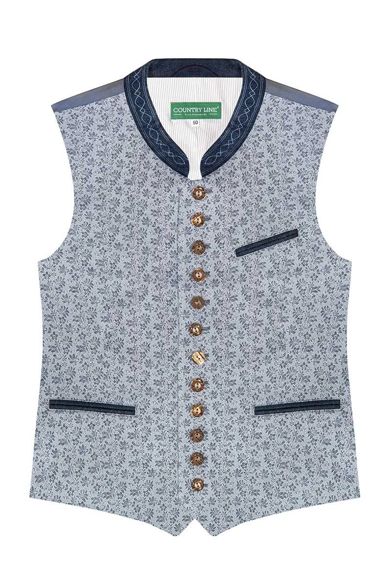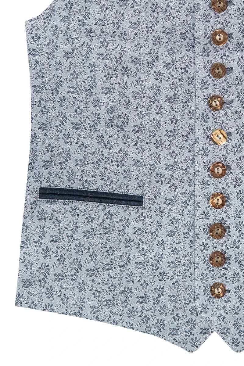 - hellblaues Vorderteil aus Leinen-Webstoff mit floralem Muster