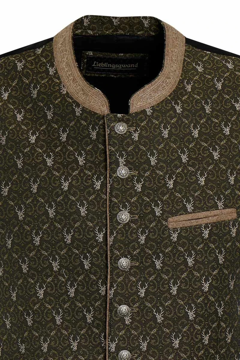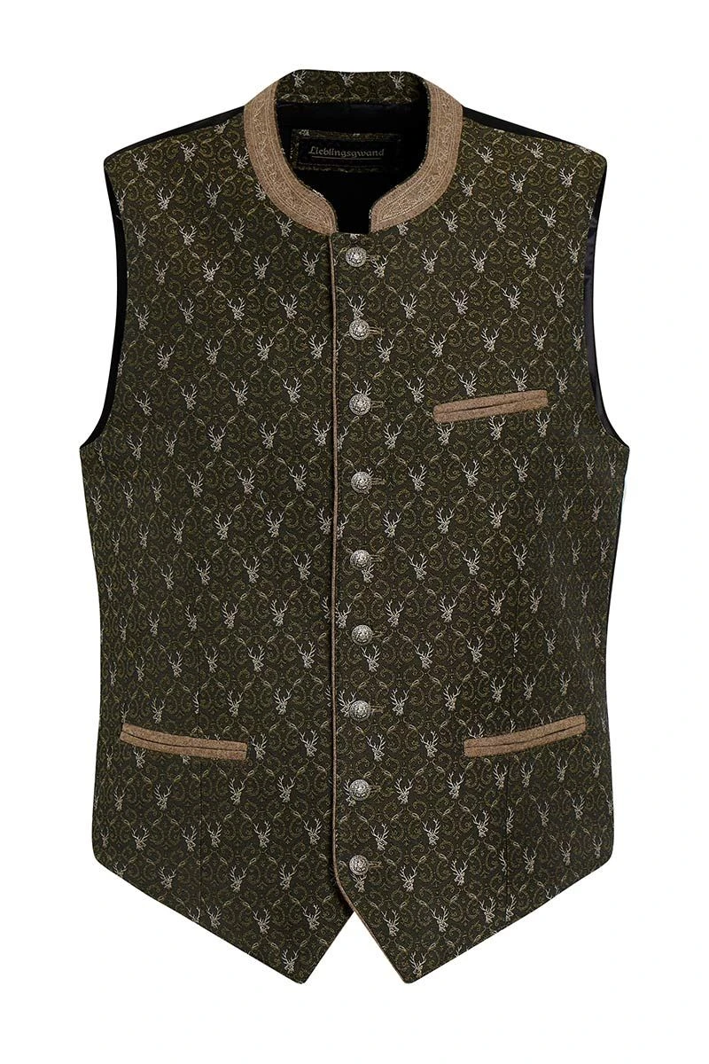 - olivfarbene Herrenweste mit Allover-Hirschmuster